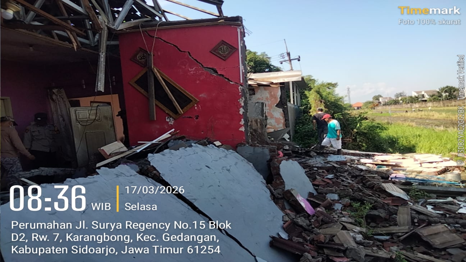 Kegiatan Aksi Kolaborasi Kerja Bakti Penanganan Rumah Roboh Akibat Bencana dilaksanakan di Perumahan Jalan Surya Regency No. 15 Blok D2, Desa...