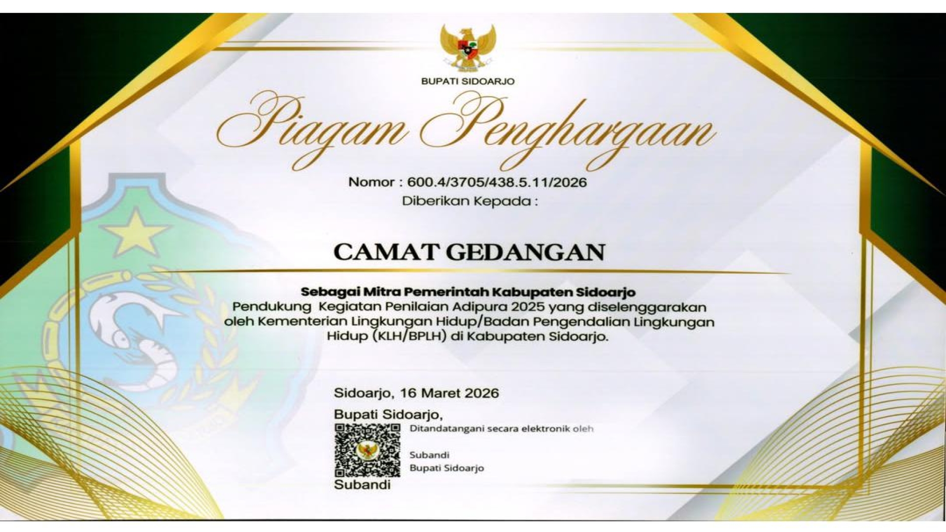 Sebagai Mitra Pemerintah Kabupaten Sidoarjo Pendukung Kegiatan Penilaian Adipura 2025 yang diselenggarakan oleh Kementerian Lingkungan Hidup/Badan...