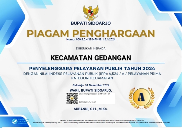 Piagam Penghargaan Penyelenggaraan Pelayanan Publik Tahun 2024